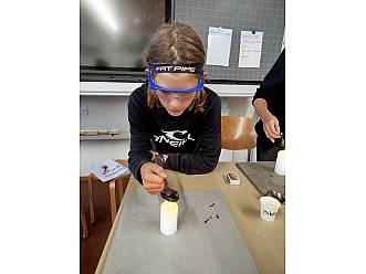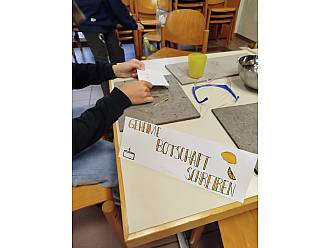 - Die 5./6. Klasse B beschäftigte sich mit Stoffeigenschaften, mischte Substanzen und schrieb sogar Geheimbotschaften mit unsichtbarer Tinte.