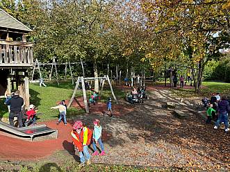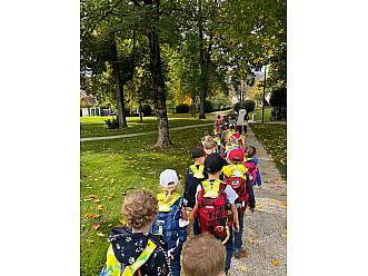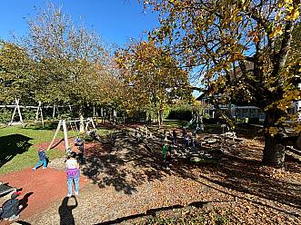 Nach ein paar spärlichen Infos entscheiden wir uns für Plan B. Wo in der Nähe ist ein grosser Spielplatz? Wir entscheiden uns für Münsingen und den Schlossgutpark. Dorthin haben wir einen direkten Bus - perfekt. Naja, nicht ganz, für 79 Kinder ist der definitiv nicht vorgesehen. Sowohl für die Hin- wie auch für die Rückreise sind wir dankbar, dass unsere Schüler/innen doch noch sehr klein sind und so vier anstatt zwei Kinder pro Sitz Platz nehmen müssen. Irgendwie haben wir es geschafft, dass alle 79 Kinder inklusive passendem Rucksack und komplettem Inhalt wieder zur vorgesehenen Zeit zurück in Biglen waren. Es war - trotz viel geforderter Spontanität - ein tolles Erlebnis!