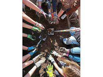 Wir haben auch ein Pfirsichbaum gepflanzt (N.R.). Für den Pfirsichbaum mussten wir zuerst Steine wegnehmen (N.R.). Es war stressig (O.B.). Aber ich habe das Gefühl, dass es allen gefallen hat (R.M.).